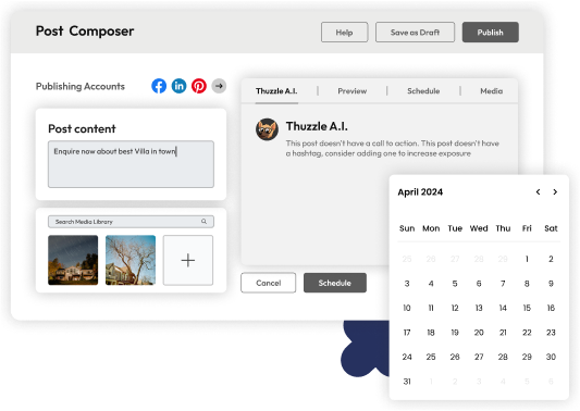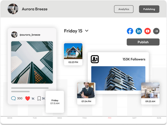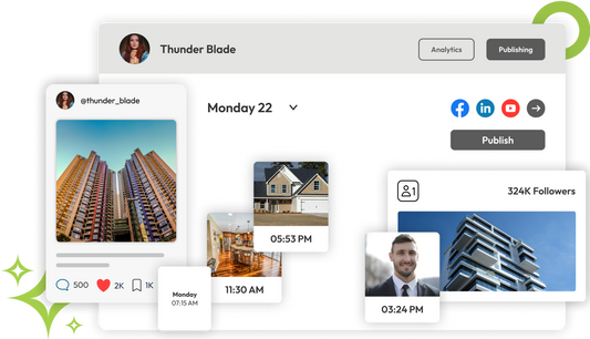 Access a curated library of real estate-specific content, including industry news, market trends, and compelling visuals, to enhance your social media presence.